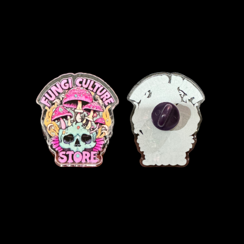 Clear 1.5" acrylic pin in the shape of my Store Logo.