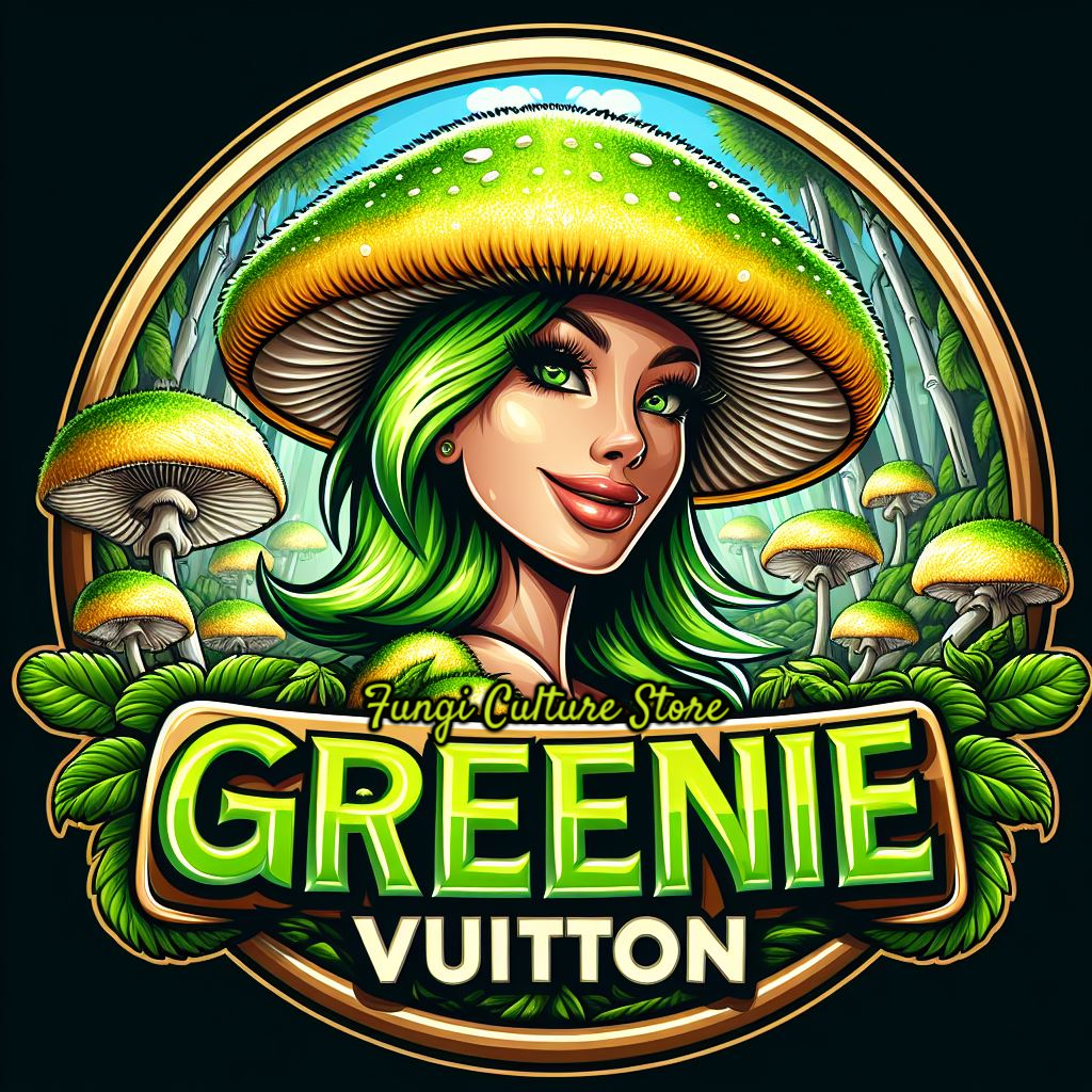 10 ML Liquid Culture Syringe Greenie Vuitton is an isolation of Bluey Vuitton. It was isolated by James Cruz, a mycologist from Michigan. Bluey Vuitton is a Psilocybe cubensis isolation that emerged around 2014. It was crossed and stabilized by Silly Cybin. It is a cross between Panama and Melmak PE varieties. Greenie Vuitton has yellow caps and white stipes like Bluey Vuitton, but the top of caps turn green.