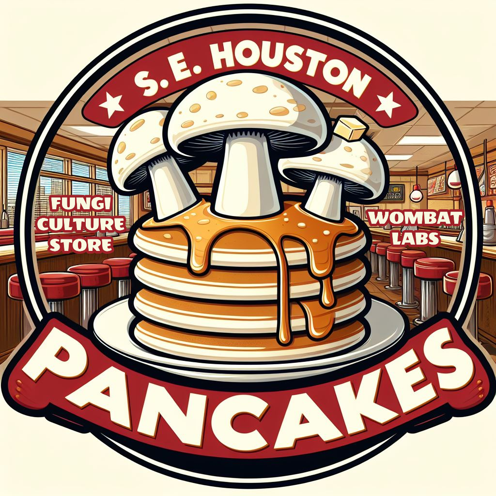 10 ML Syringe SE Houston Pancakes is an isolation by Dave Wombat. Dave was growing a landrace strain of cubensis found in Southeast Houston, Texas. Found by Old Edible Earth Fungi. Dave noticed that some of SE Houston caps would go flat at maturity without much curl and with very low spore drop. Dave isolated and stabilized those traits, and named them SE Houston Pancakes.
