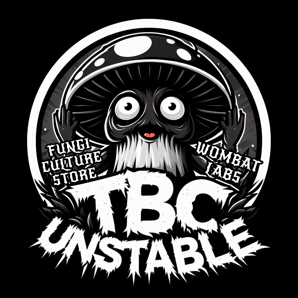 TAT Black Cap Unstable (TBC Unstable) is Dave Wombat's unstable culture of True Albino Teacher Black Cap. They typically have the black spot on the center of the caps, but they do not always grow in the typical small size and shape of stabilized TBC. Some dome caps, some flared caps, and various shapes and sizes, but just as spicy. TAT Black Caps is among the most potent of Wombat Lab's genetics.